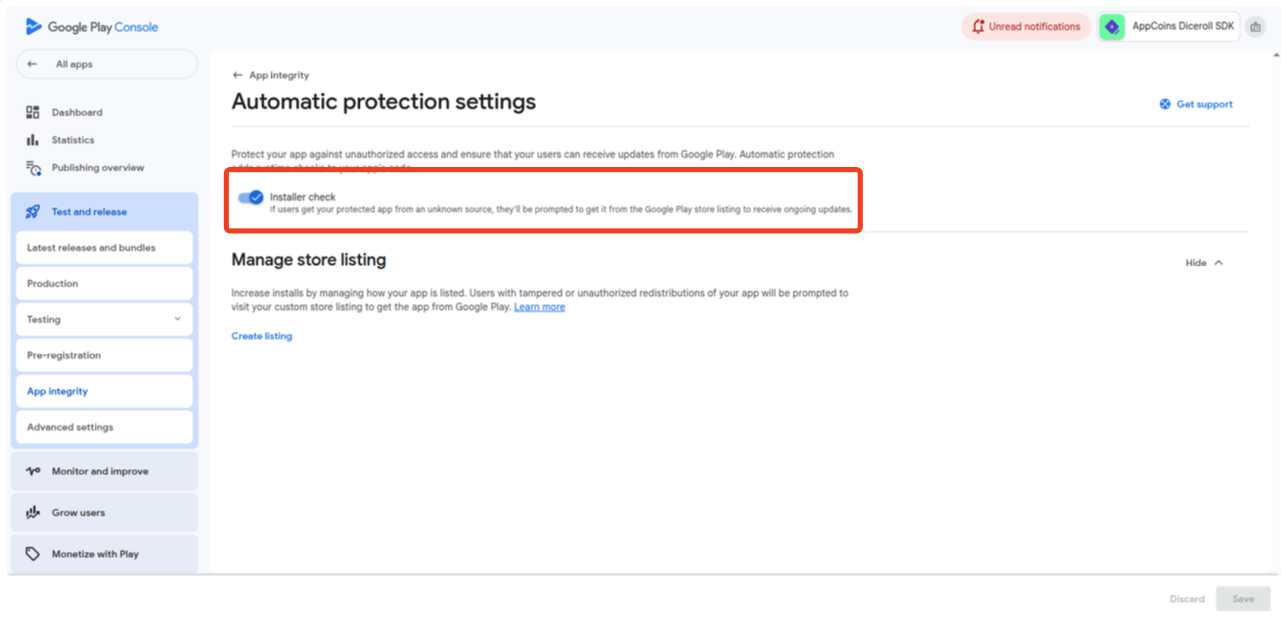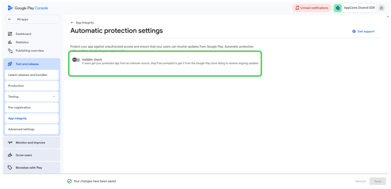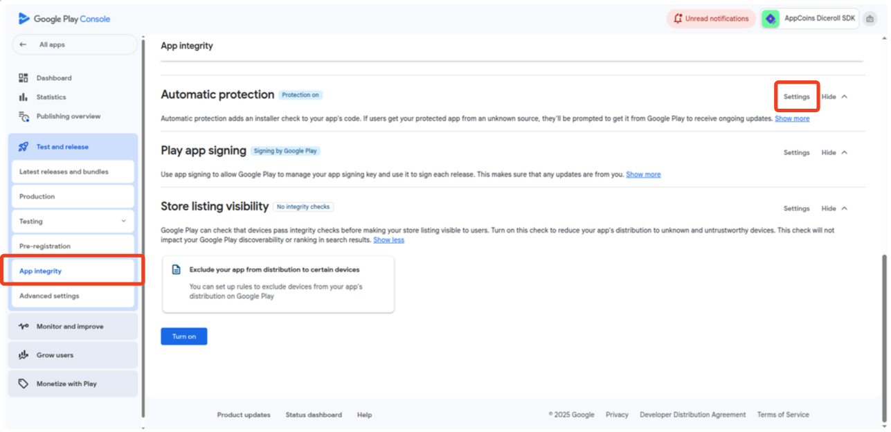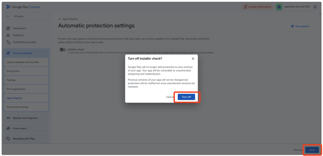 Disable Google Play App Integrity Warning